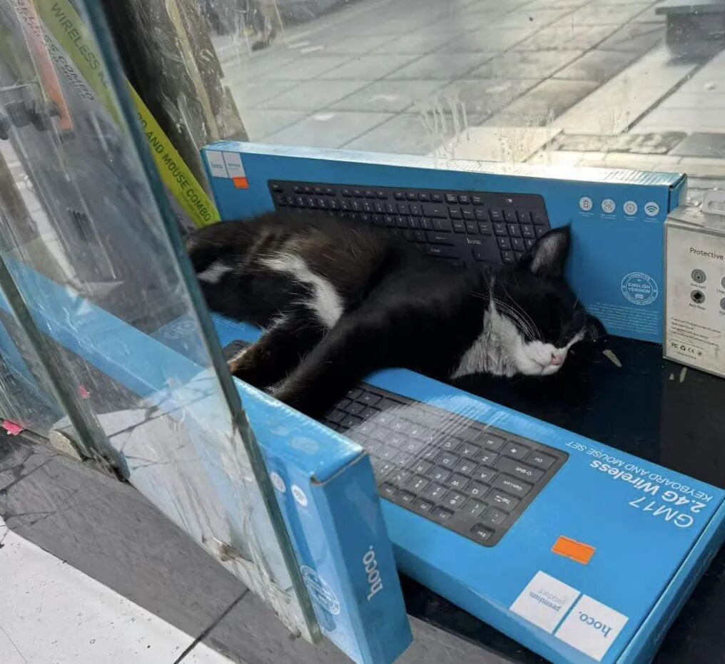 我看到店里小伙亲手养大的两只猫,一只五个月,一只两岁。五个月的小黑猫安静地待在脚边柜子里。小伙说,战争期间它们也一直住在这里。